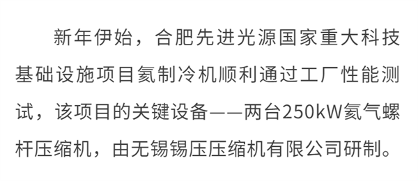 錫壓氦氣螺桿壓縮機助力合肥先進光源國家重大科技基礎(chǔ)設(shè)施項目