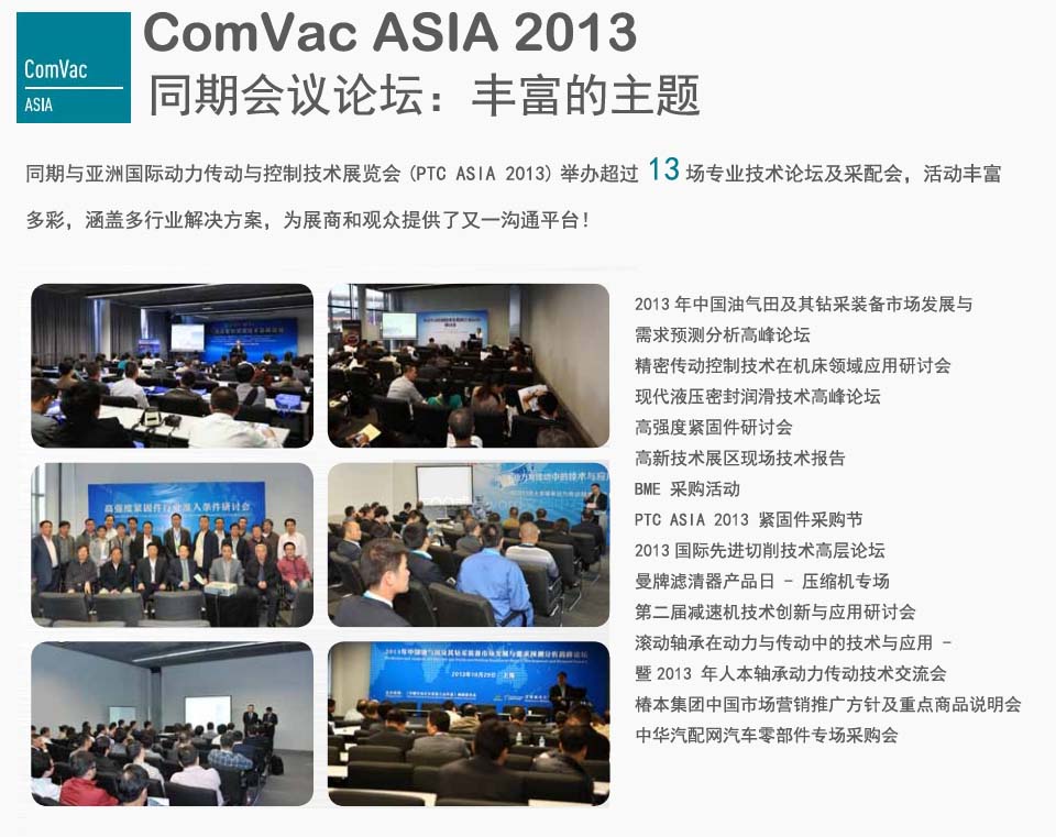 10月28日—10月31日PTC ASIA 2013上海國際壓縮機及設備展覽會(ComVac ASIA2013)已于上海新國際展覽中心圓滿閉幕。